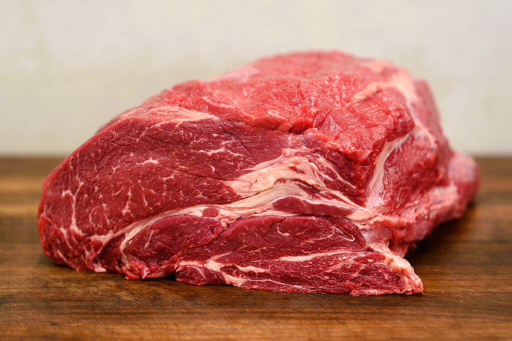Chuck heeft een mooie vetmarmering die bijdraagt aan smaak en malsheid tijdens het langzaam garen.